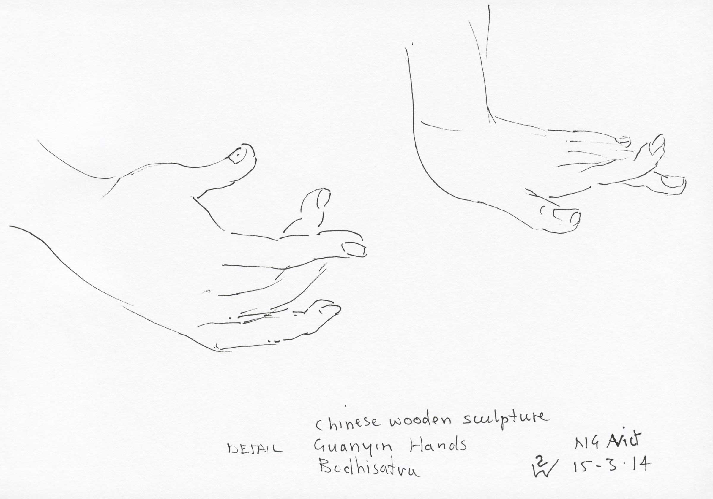Chinese wooden sculpture, Guanyin hands, NGV 2014