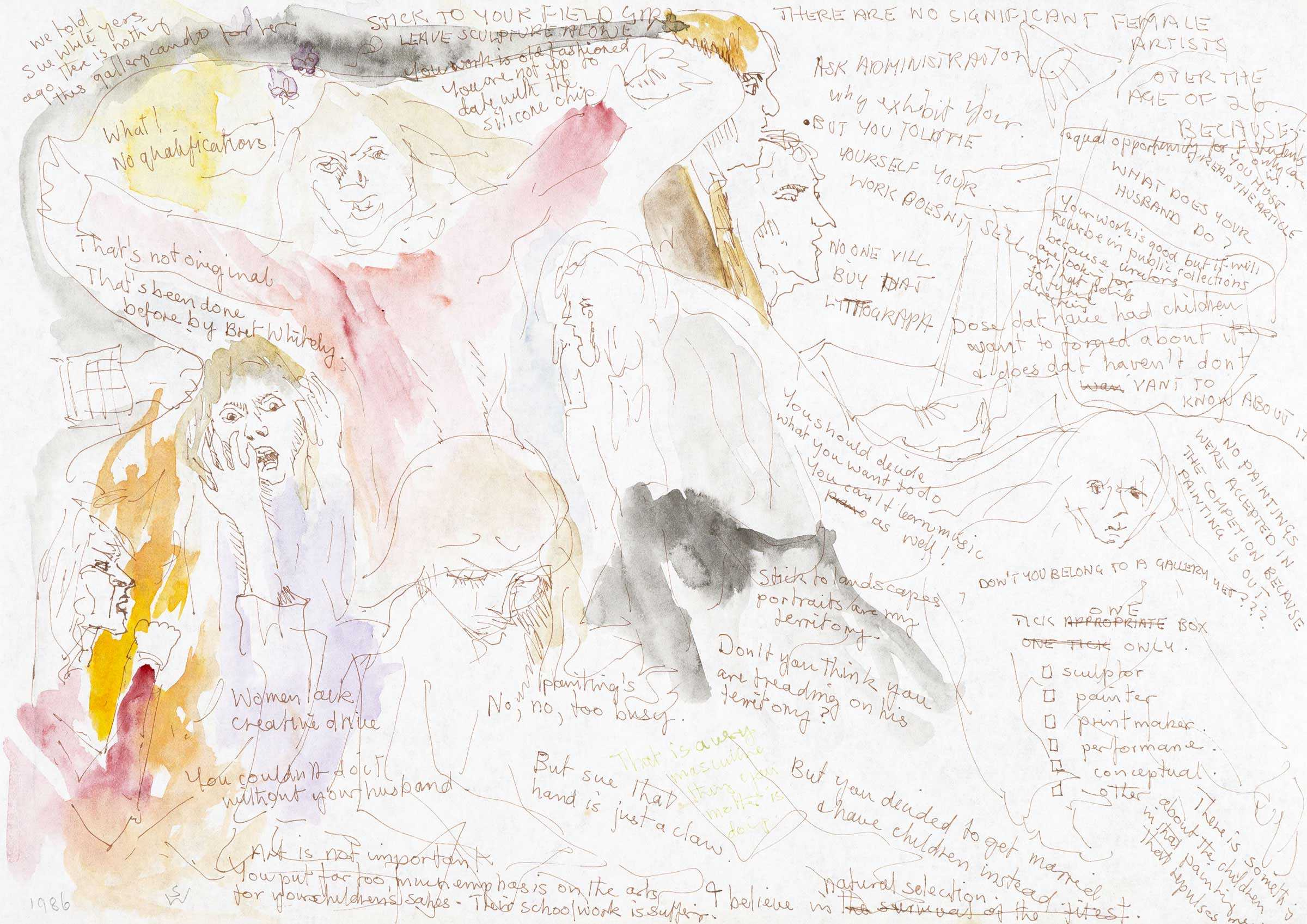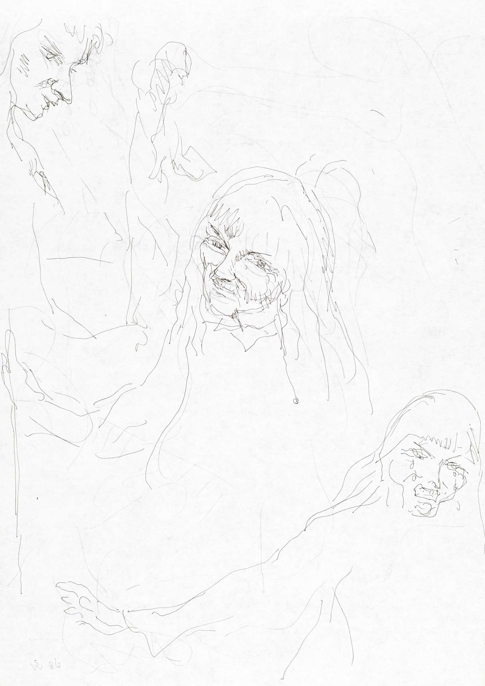 Self portraits with disparaging comments (composition sketch) 1 1986