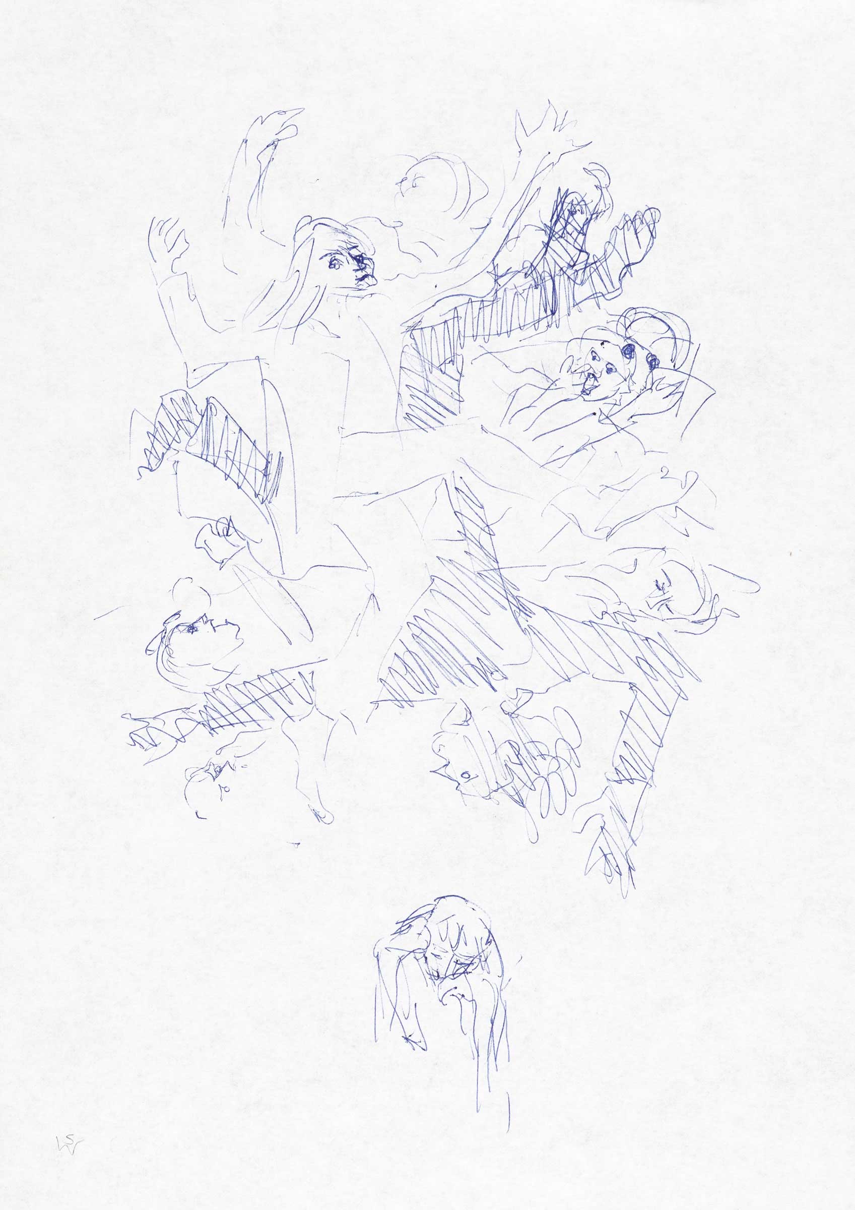 Musicians spelling 'Peace' (composition sketch) 1986