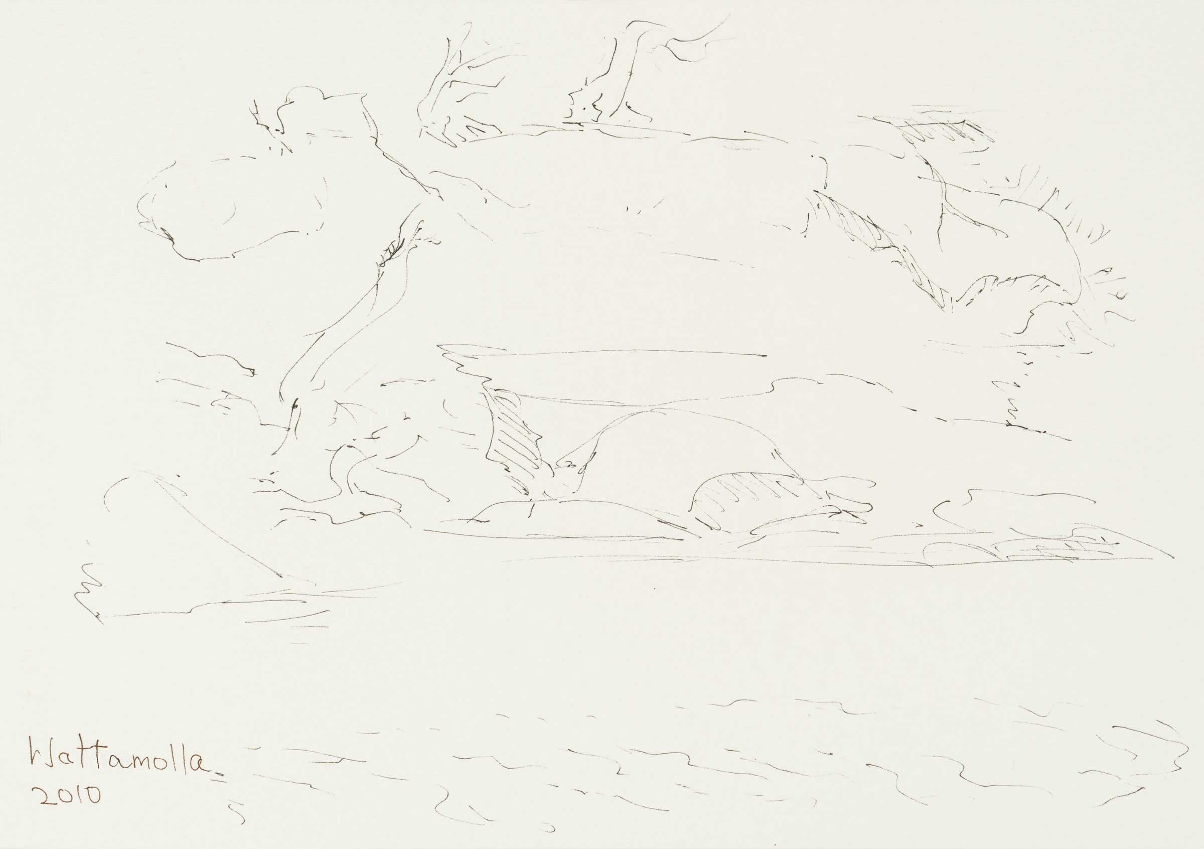 fibre-tip drafting pen, black ink and watercolour