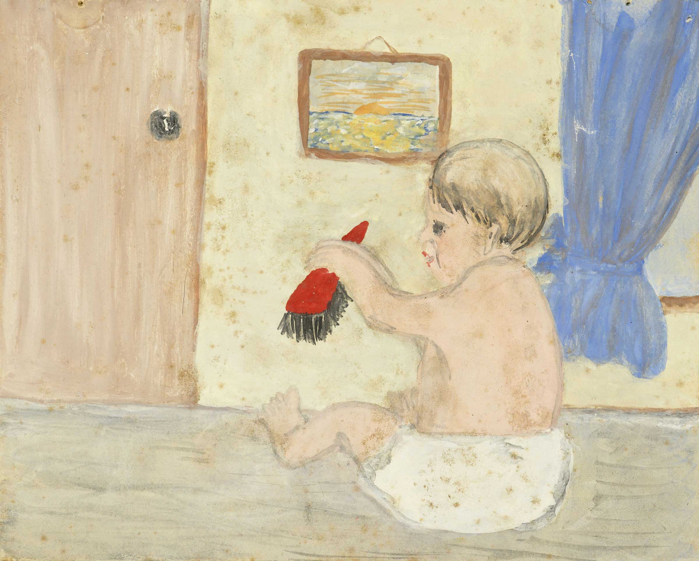 Baby brother Bill, playing with dustpan brush 1955