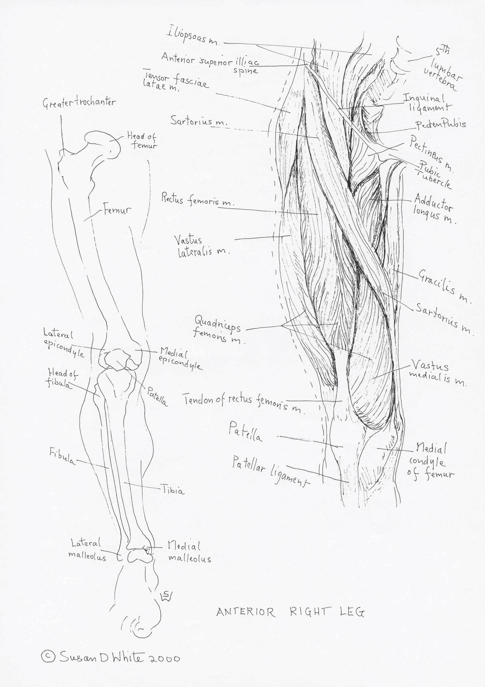 Anterior right leg (thigh muscles) and skeleton of lower limb 2000