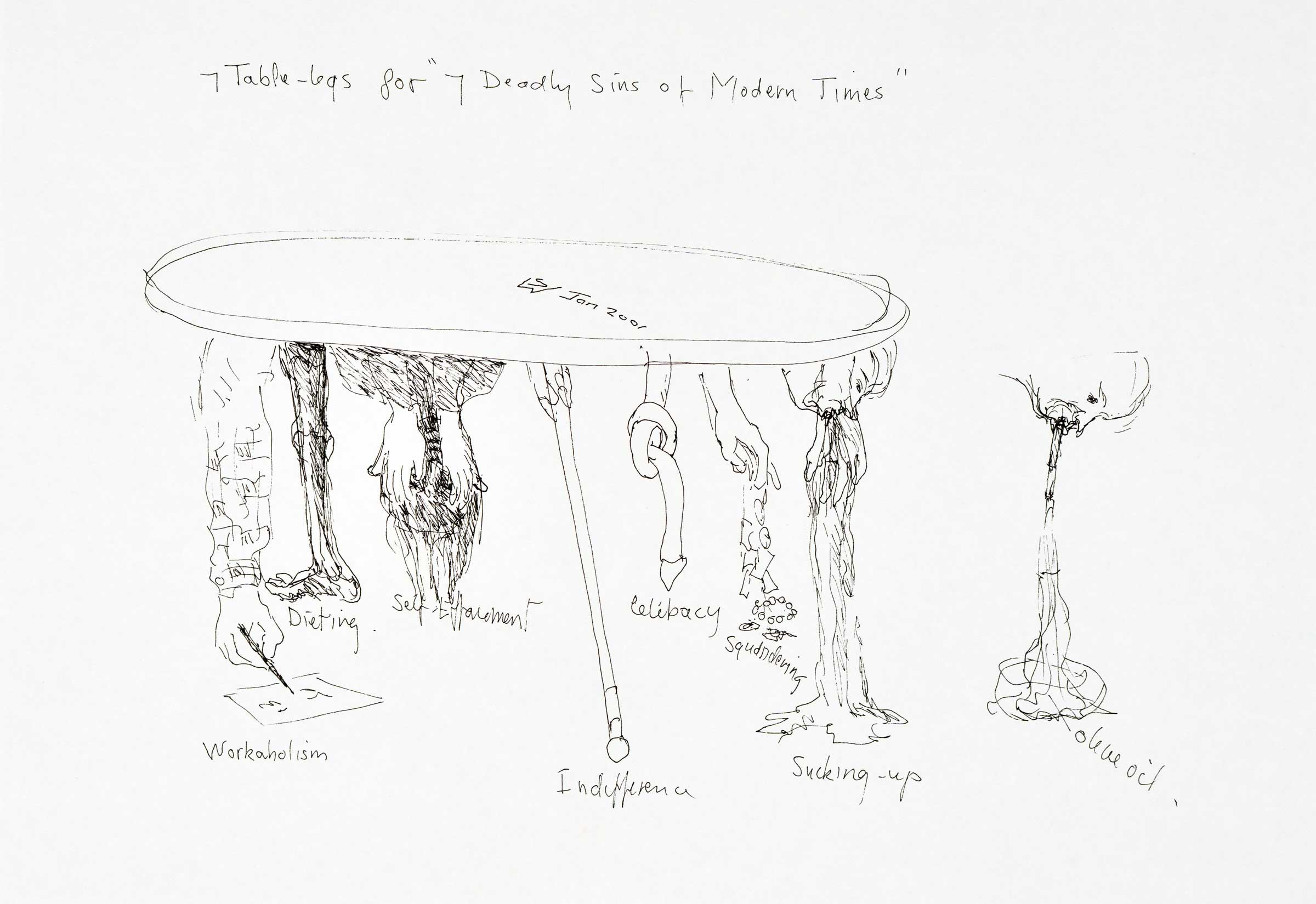 Seven table legs for 'Seven deadly sins of modern times' (sculpture assemblage) 2001