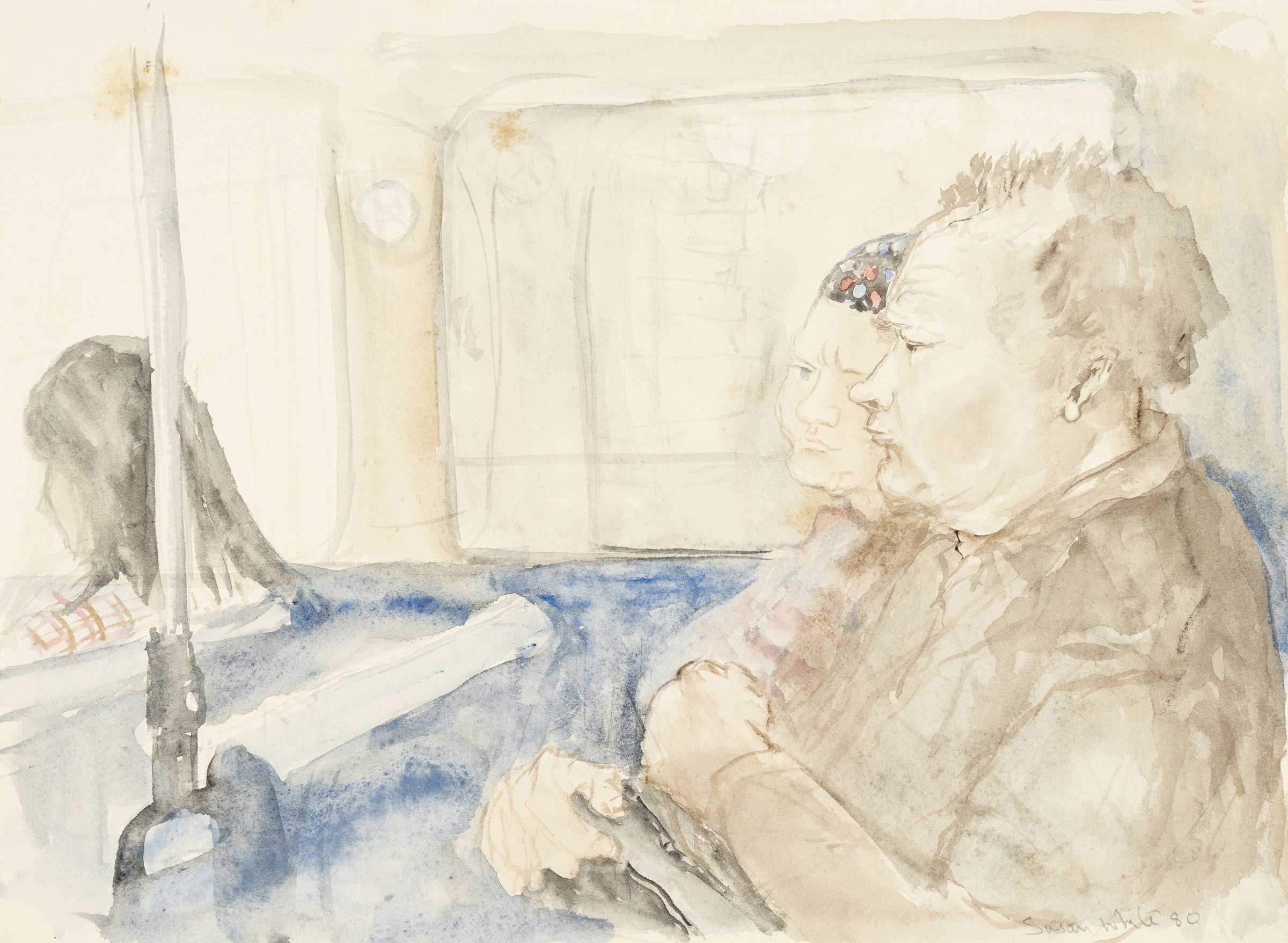 Commuters on Sydney bus (composition sketch) 1980