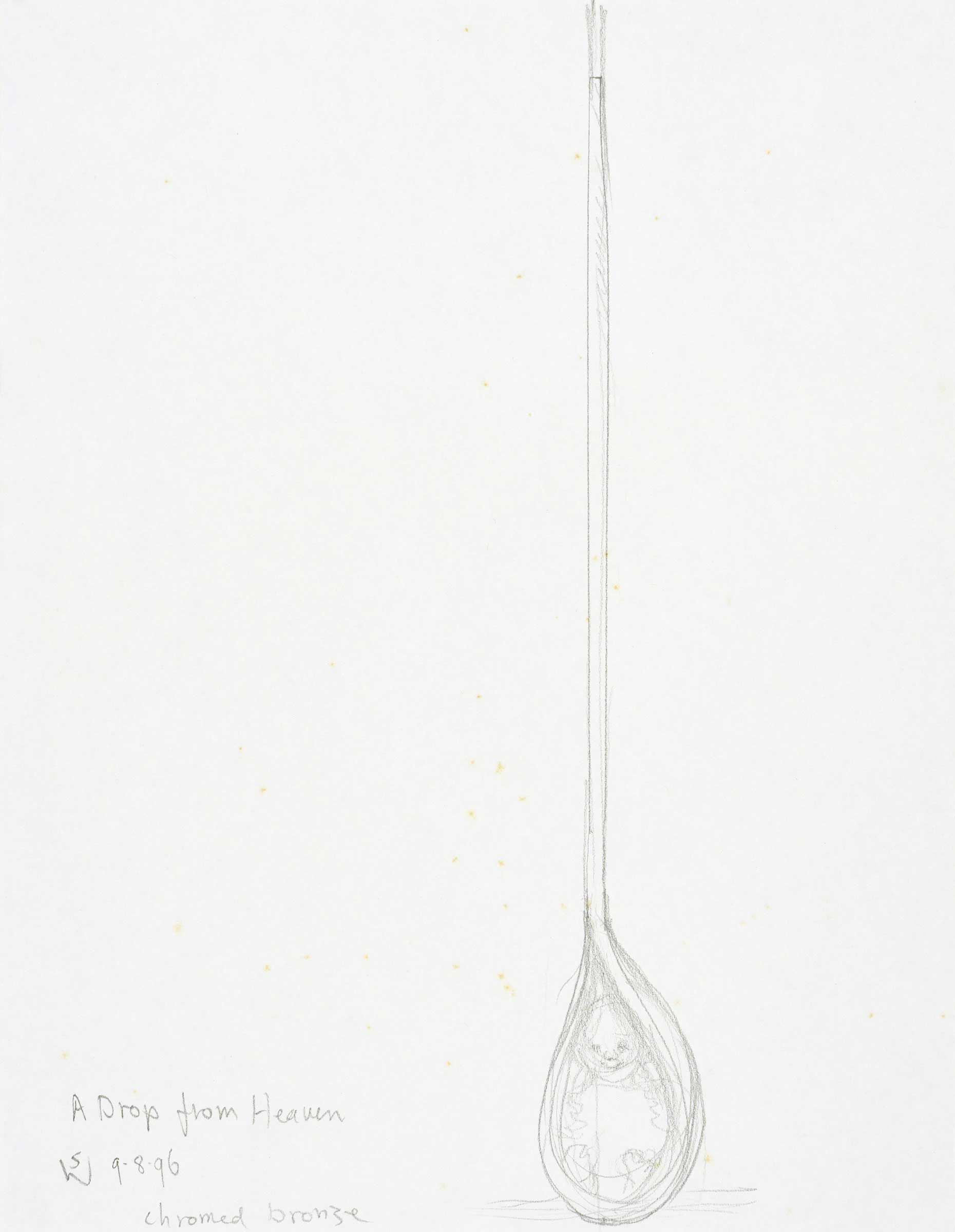 A drop from heaven, chromed bronze hanging sculpture idea 1996