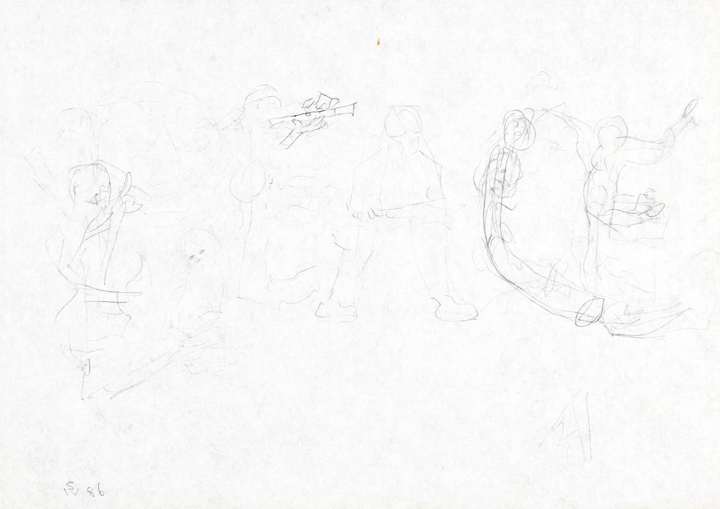 Musicians spelling 'Peace' (composition sketch) 1986