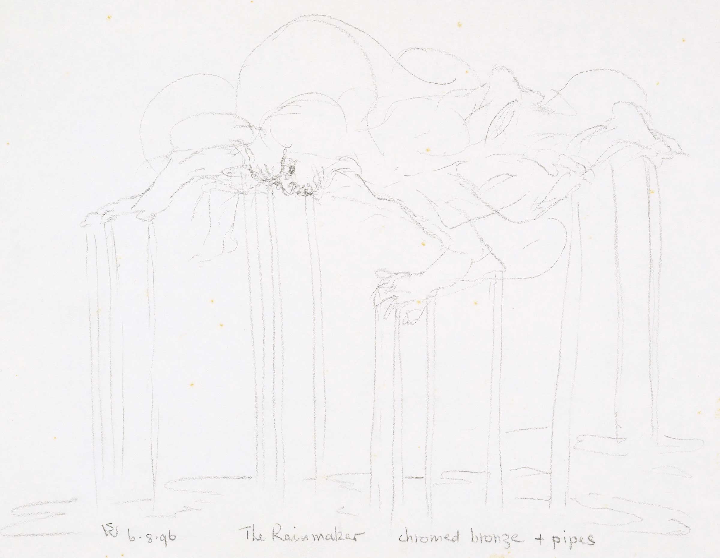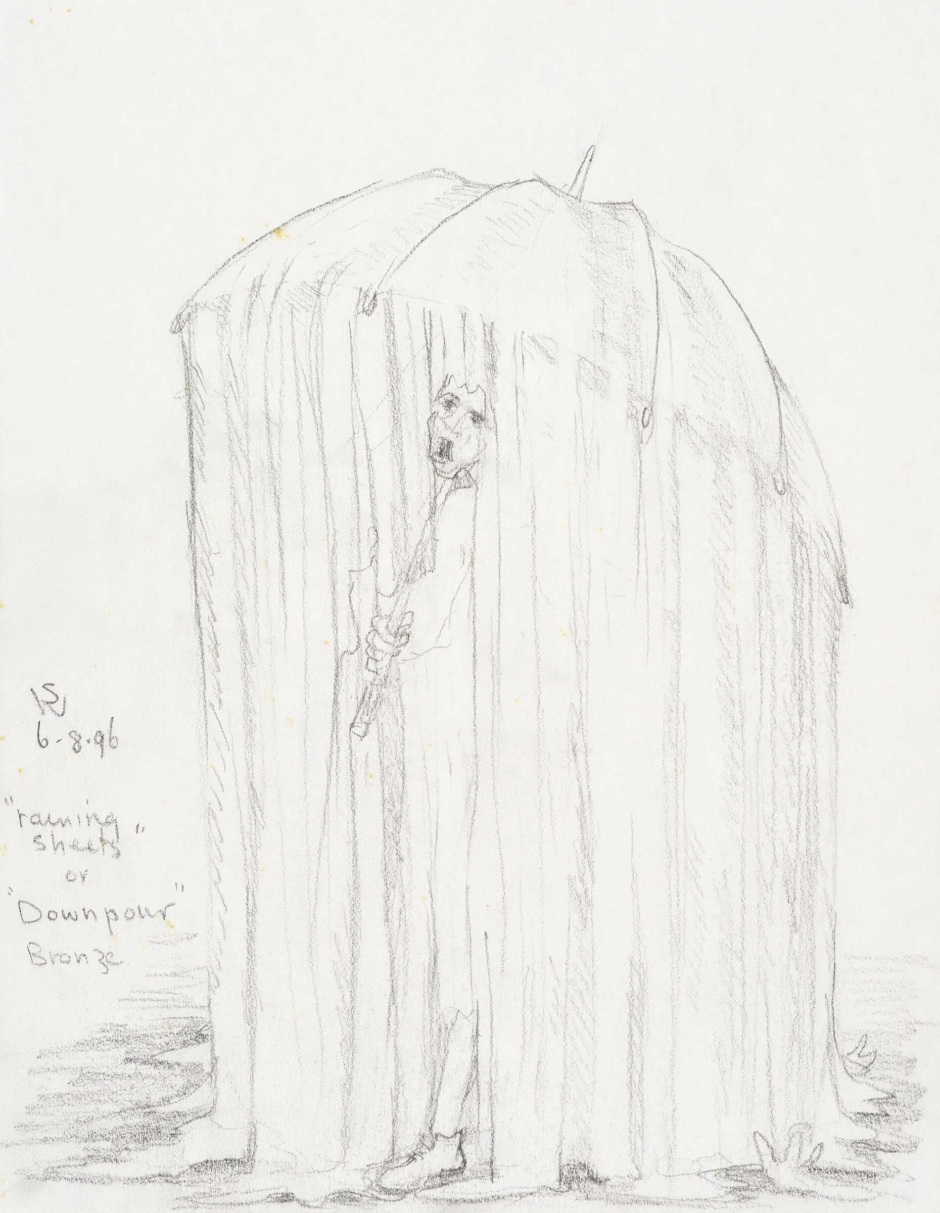 Raining sheets or downpour, bronze sculpture idea 1996