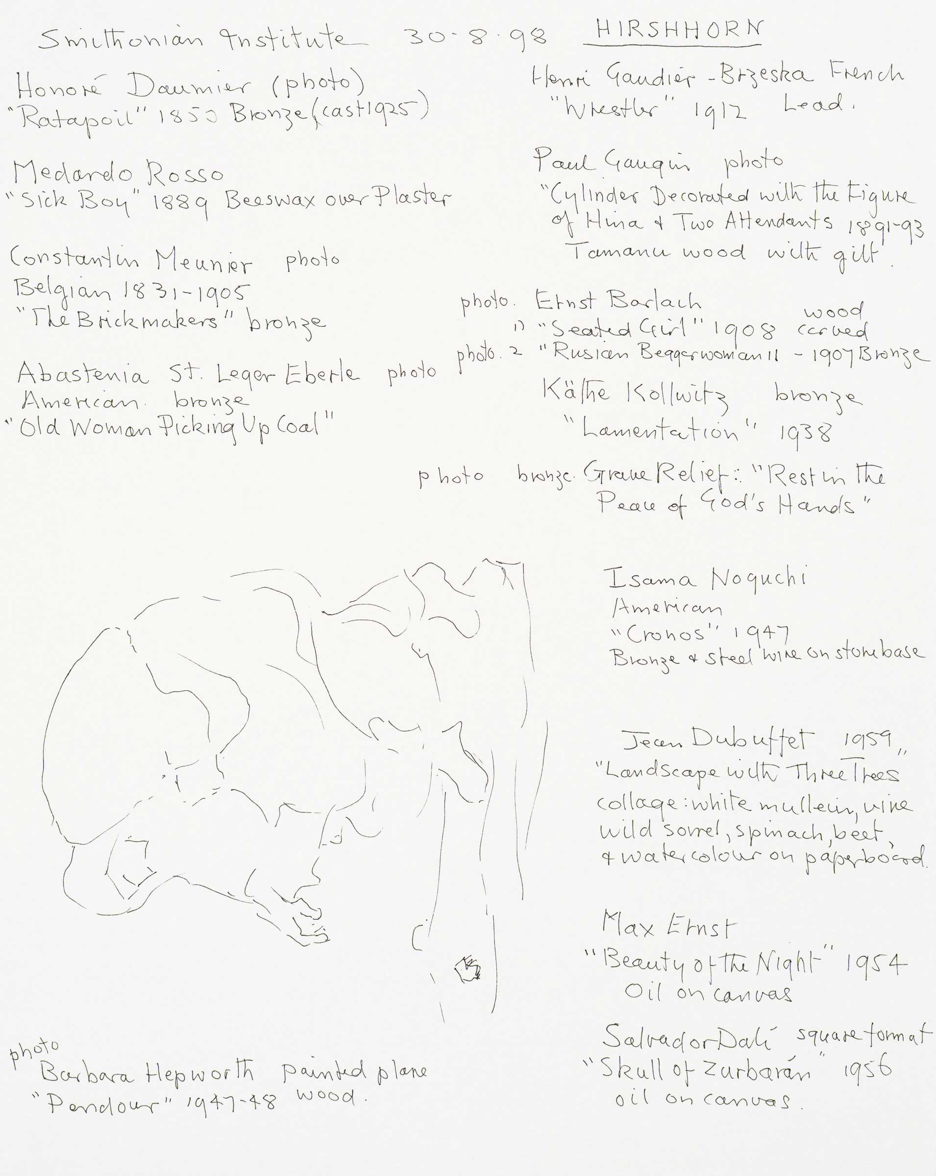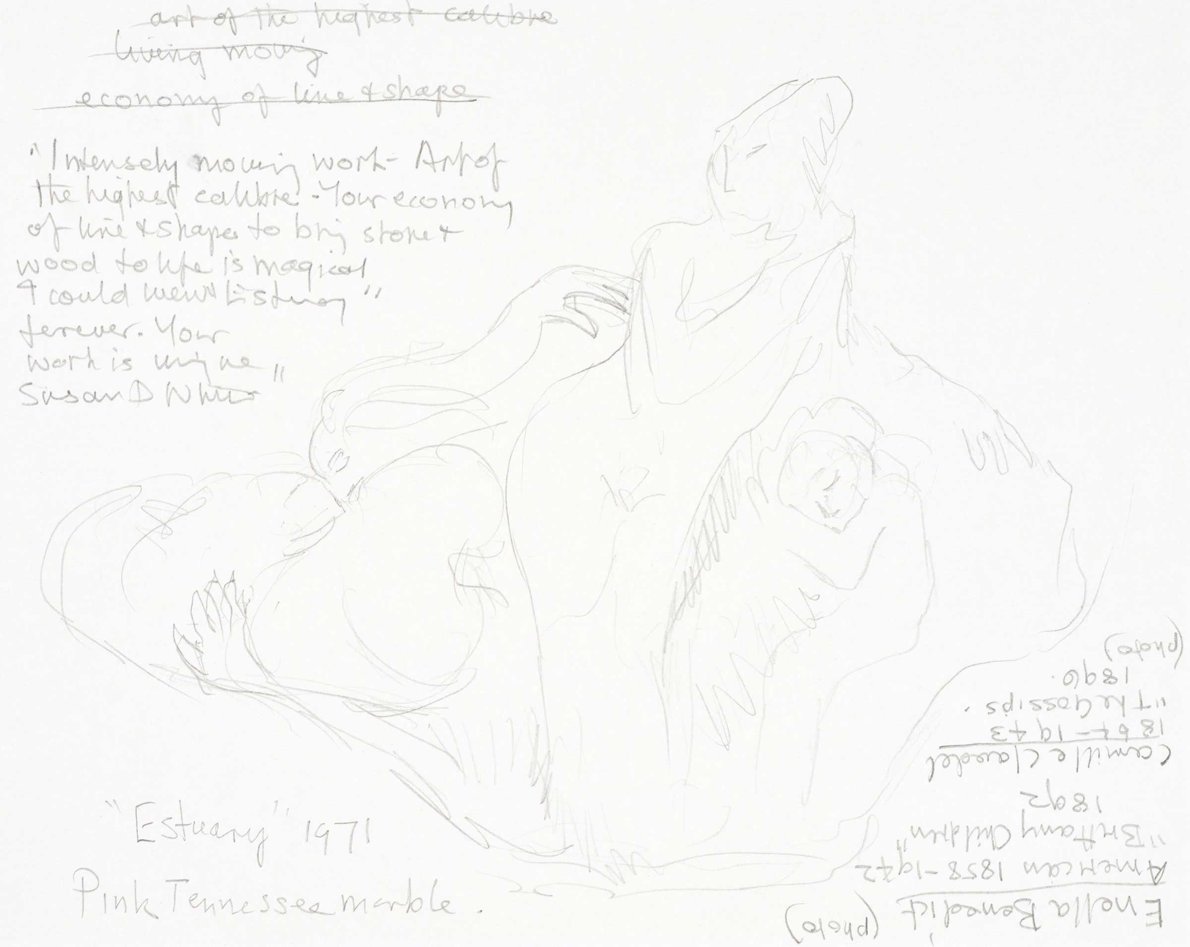 Estuary, pink marble carving by Lorrie Goulet, comment to Goulet on her work by SDW, notes on exhibits 1998