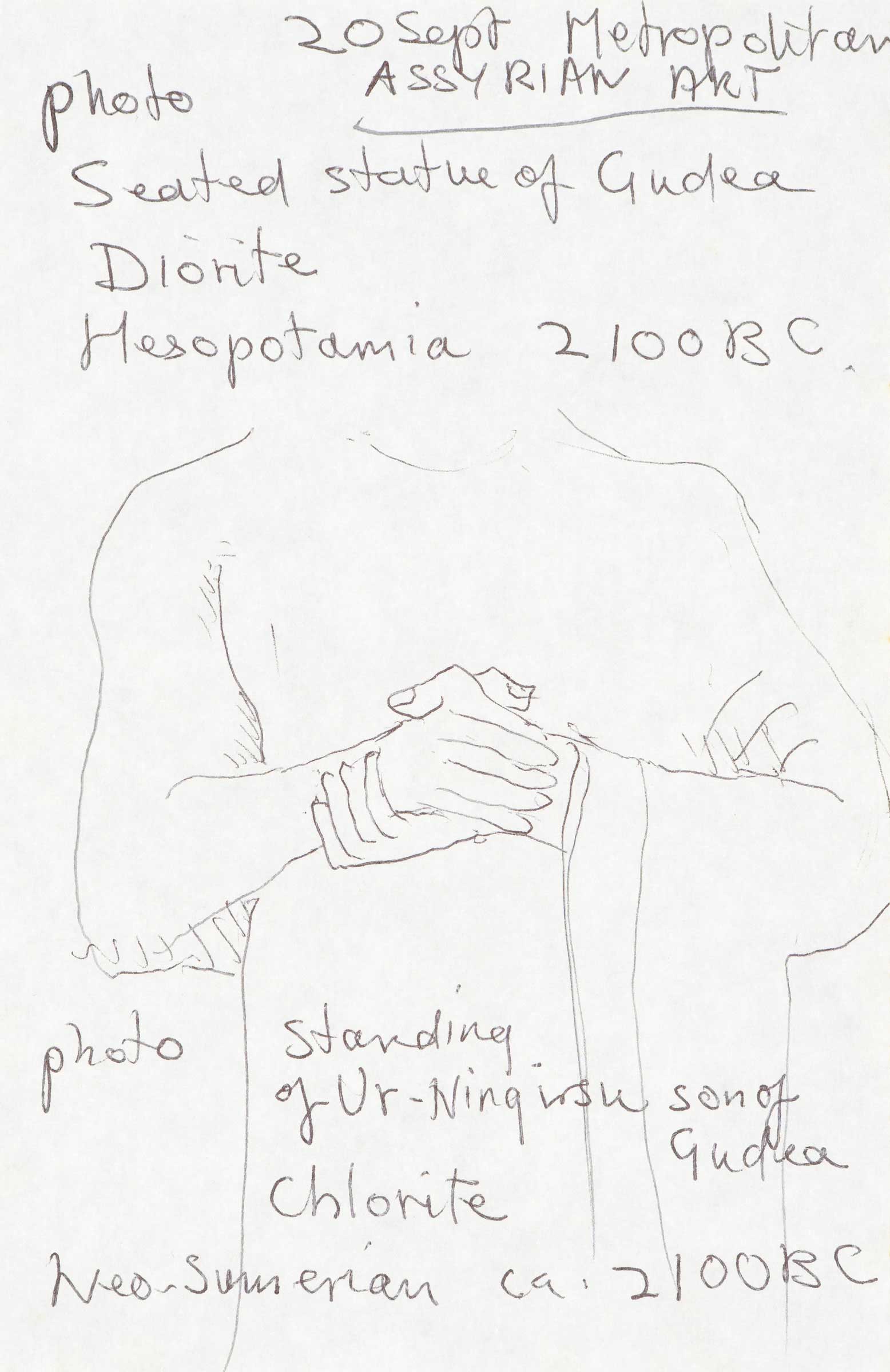 Gudea, Assyrian standing figure, notes from Metropolitan Museum (p. 1/15) 1998
