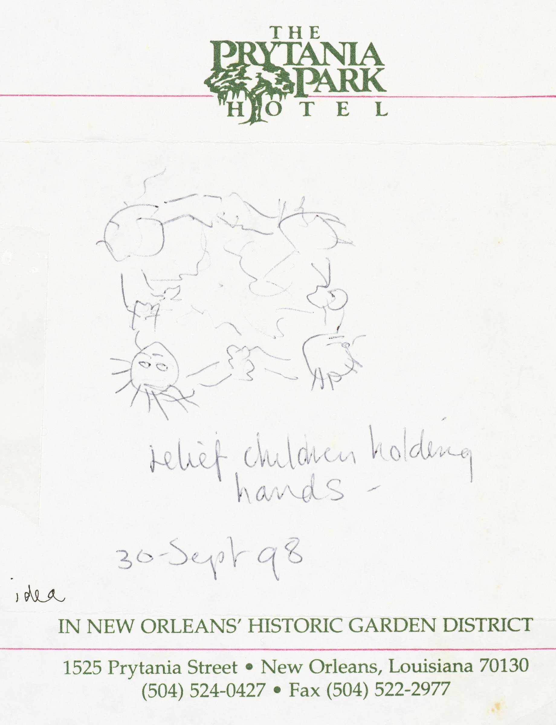 Relief of children holding hands (note, idea for sculpture) 1998