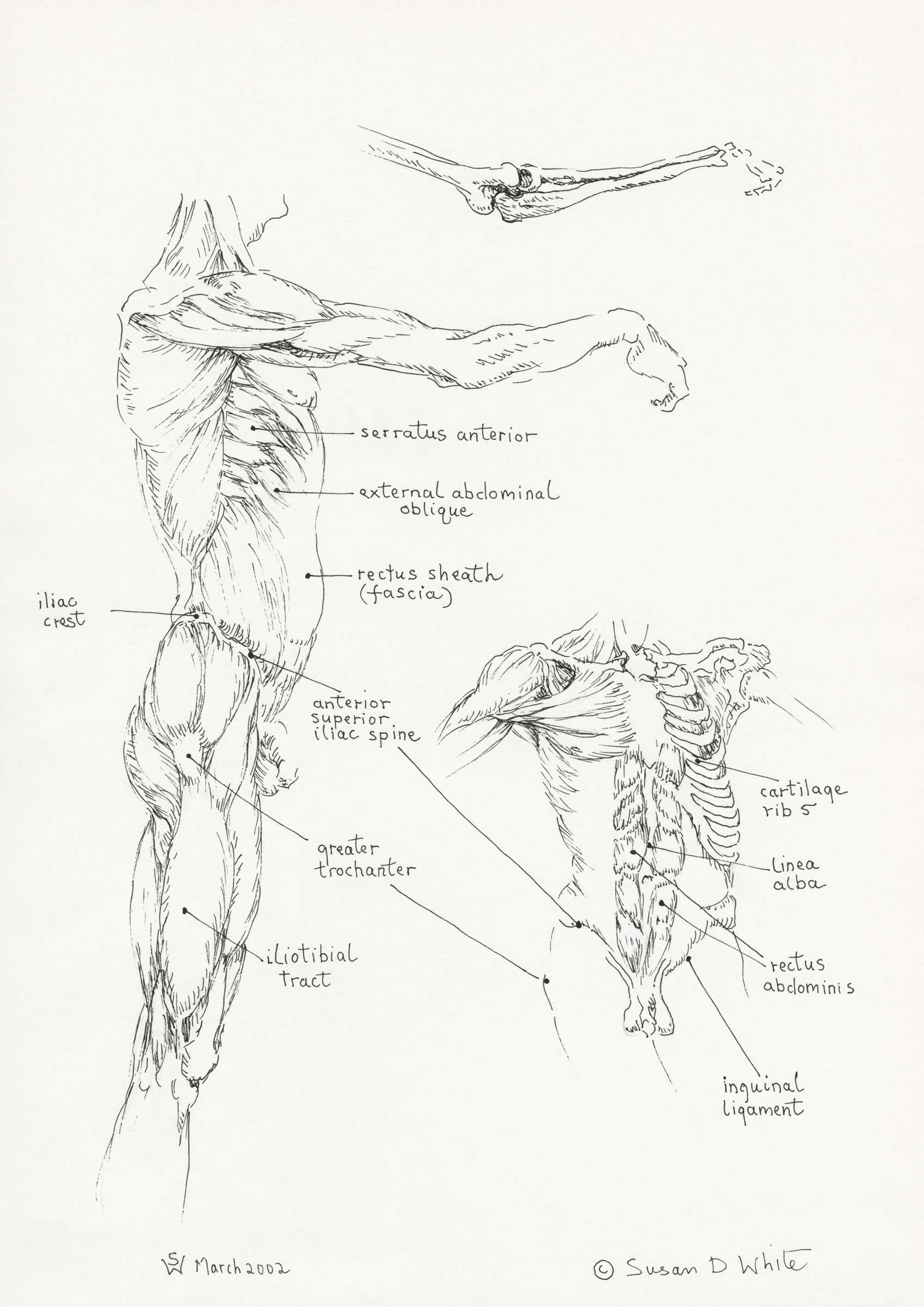 Lateral view of right upper limb, trunk and thigh. Anterior view of trunk muscles and fascia 2002