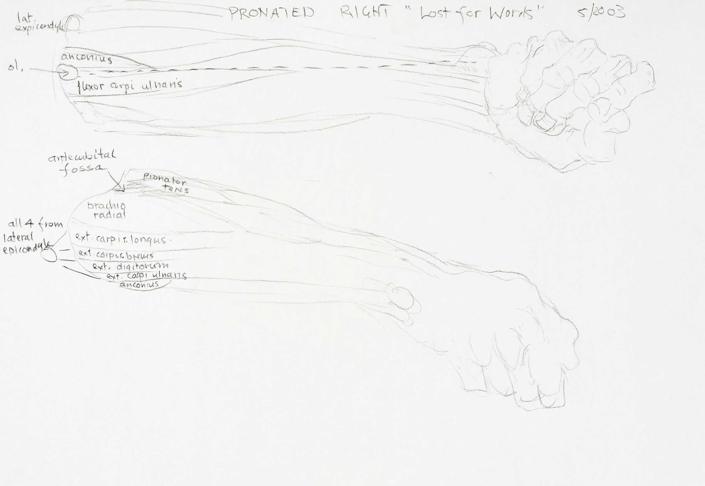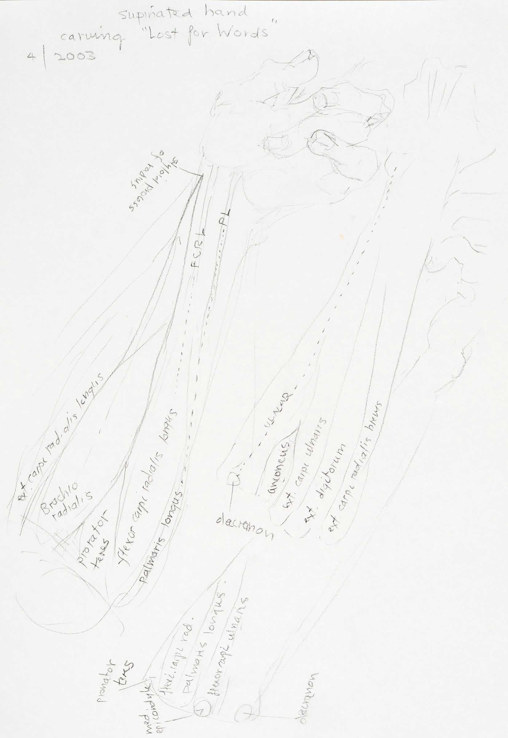 Pronated right forearm and notes, 'Lost for Words' 2003