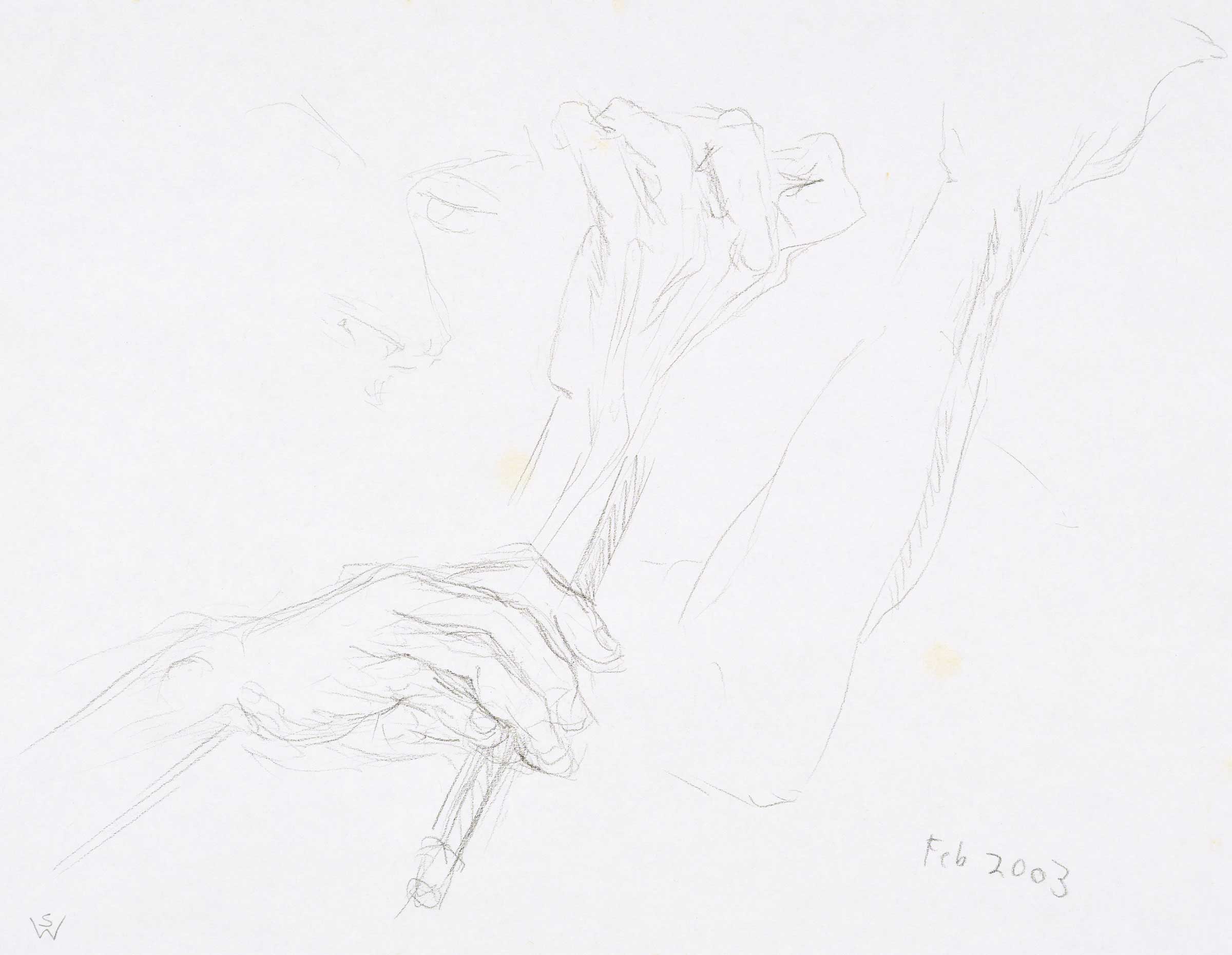 Stephen, three-quarter back view, hand studies 2002