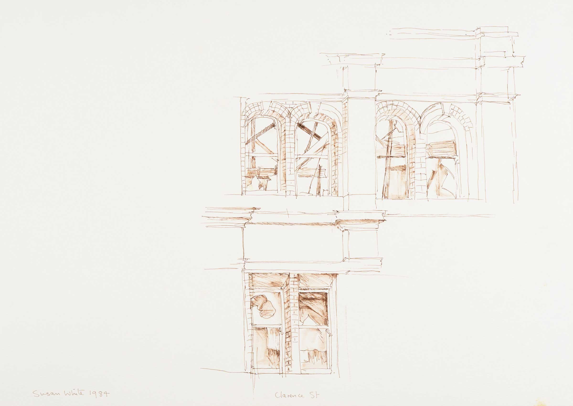 Burnt-out building, Clarence St. 1984