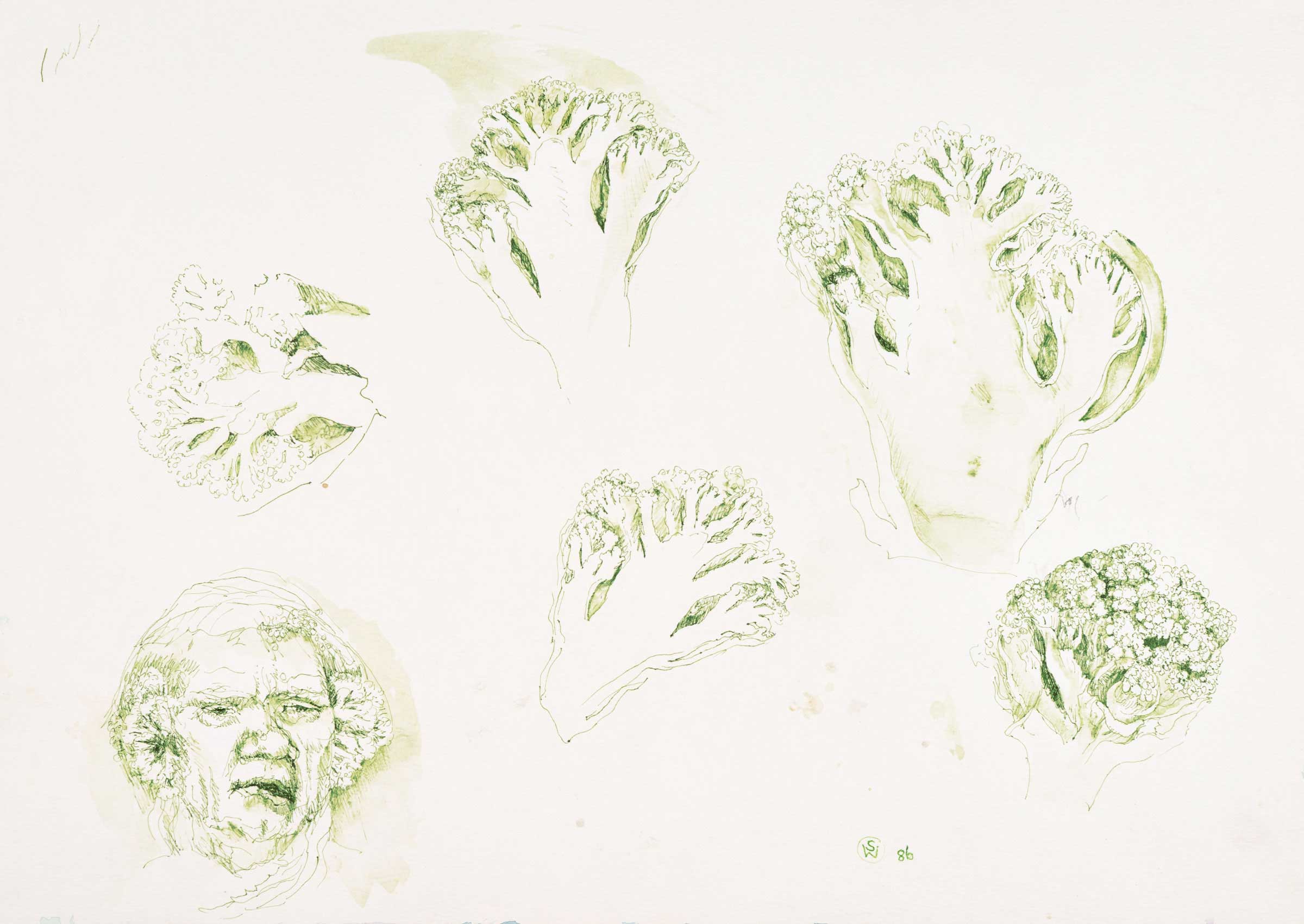 drafting pen, green ink and wash