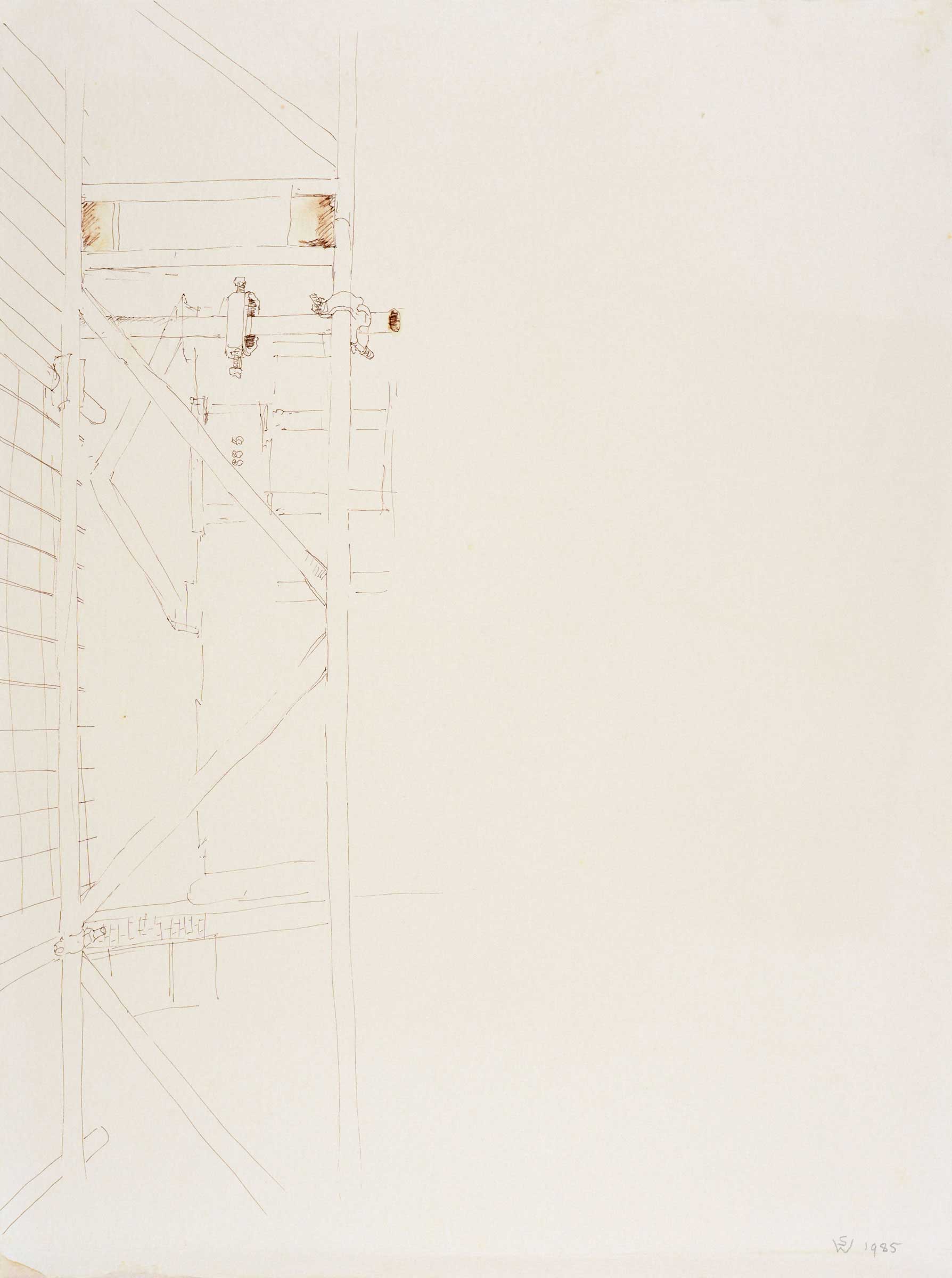 drafting pen, brown ink and wash